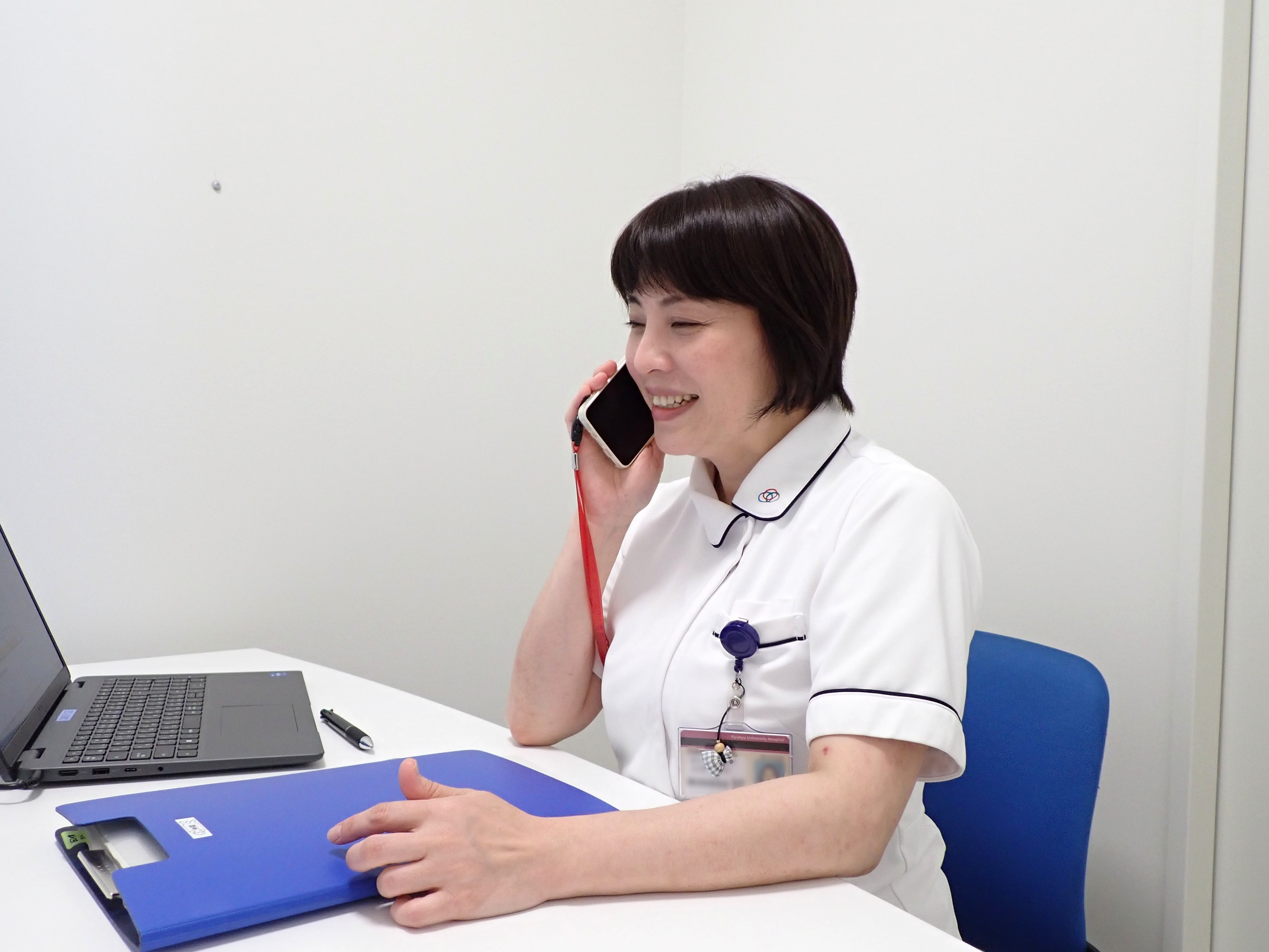 仲間 私たち看護師は、主に入院準備部門と退院支援部門という2つの業務に携わっています。入院準備部門では、入院が決まった患者さんに入院中の検査・治療や手術の予定を説明するとともに、内服している薬剤情報を聞き取り、休薬・中止薬等の確認・指導を実施しています。また、在籍する摂食・嚥下障害看護認定看護師により、入院中の誤嚥を未然に防ぐための対応もしています。さらに、ケアマネージャーや地域包括支援センターの担当者に連絡して情報を取り寄せ、病棟や退院支援部門と共有することも行っています。退院支援部門においては、自宅退院が困難な患者の転院を調整したり、在宅療養に向けて訪問診療や訪問看護、かかりつけの開業医につなげたり、在宅サービスを整えるなどの支援をしています。退院前には地域関係者との合同カンファレンスを全国的にも類を見ないほど数多く実施しており、退院に向けて支援体制を日々整えています。その人らしく生きることを支援するために、ともに寄り添い、患者と家族の人生という大切な時間に関わる看護師という職業にやりがいを感じています。